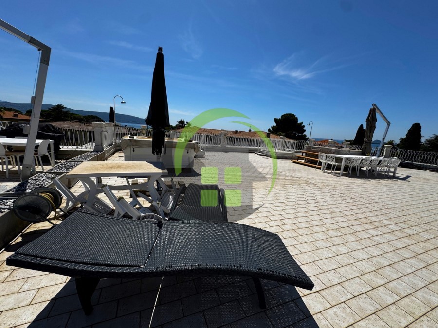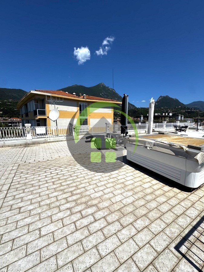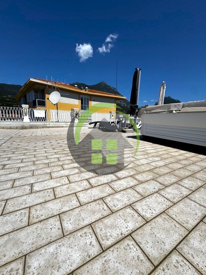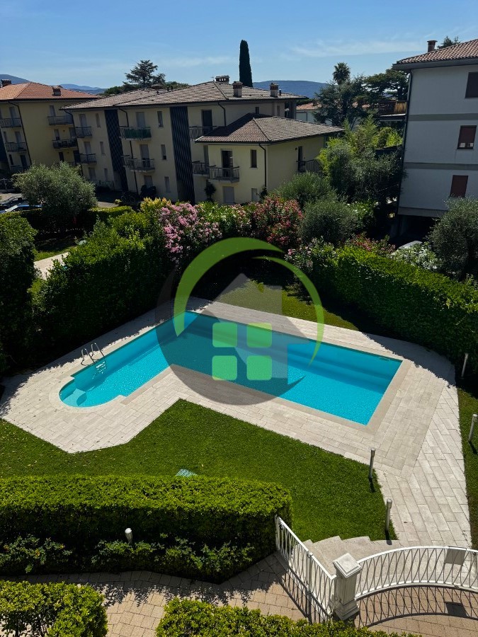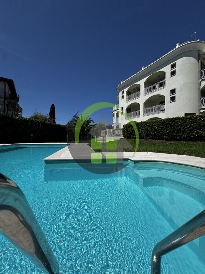 In contesto residenziale come nuovo, in strada a fondo chiuso, proponiamo bilocale posto al 2° ultimo piano in villa recentemente recuperata con stupenda piscina con sedute idromassaggio. L’immobile è composto da ingresso, soggiorno con cottura, disimpegno, camera matrimoniale, 2 balconi, bagno e soprastante solarium di 80 mq esclusivo attrezzato con jacuzzi per 4 persone. Completa la proprietà un posto auto privato. Vista stupenda sul lago, raggiungibile a piedi in pochissimi minuti. Stupendo! Ce. D