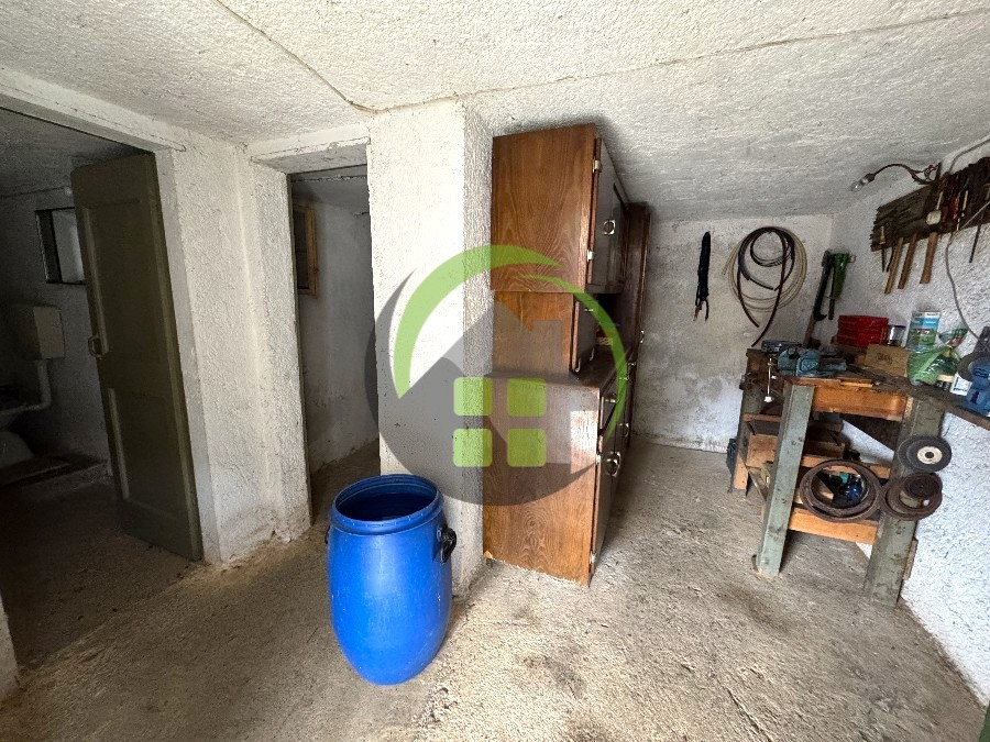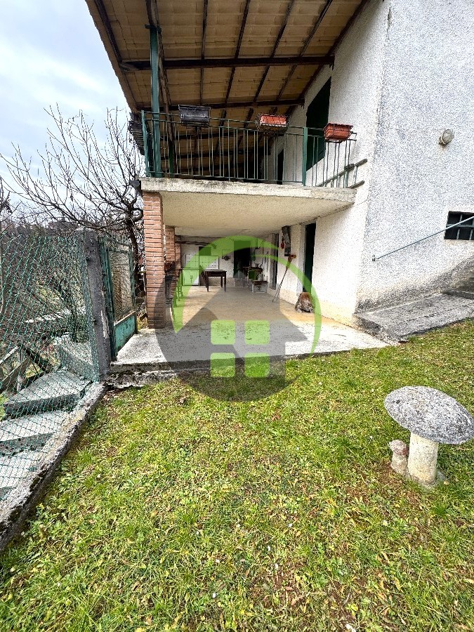 Terreno di proprietà di 1000 mq parzialmente recintato di fronte all’immobile. Presenza di vasca di recupero per acqua piovana (no acquedotto), allaccio a corrente elettrica e riscaldamento tramite stufa (no gas metano). Due posti auto scoperti ed esclusivi. Ce G.