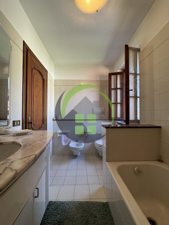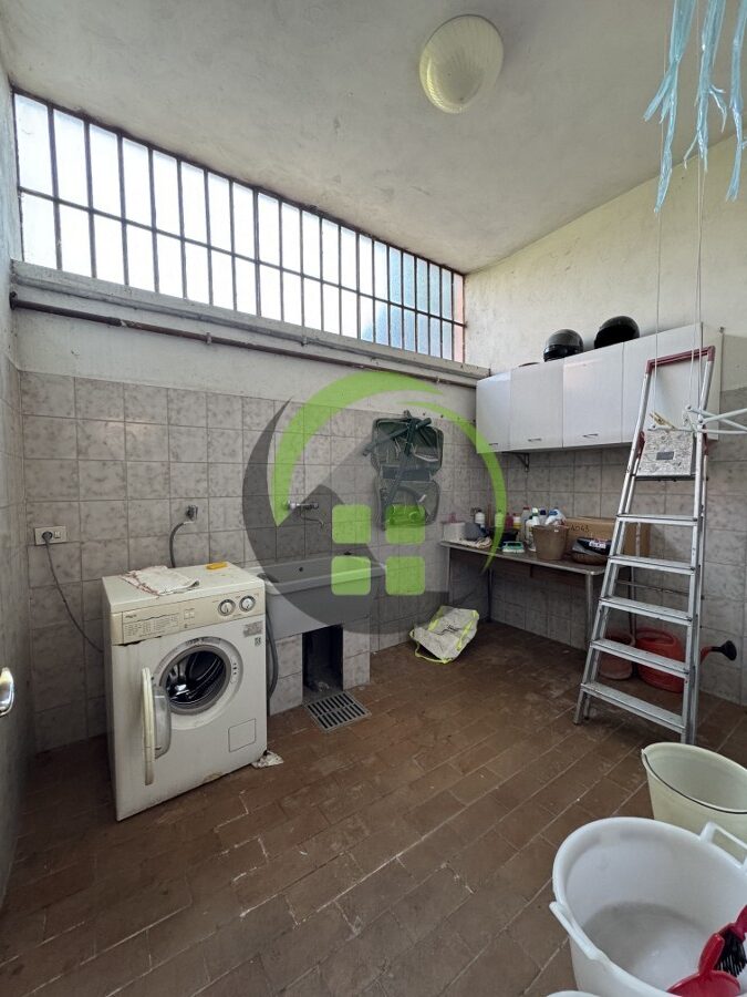 Il piano interrato completa la proprietà con un’ampia autorimessa/magazzino di circa 60 mq, due posti auto coperti, cantina, locale caldaia e lavanderia, offrendo spazi generosi e versatili per ogni esigenza.