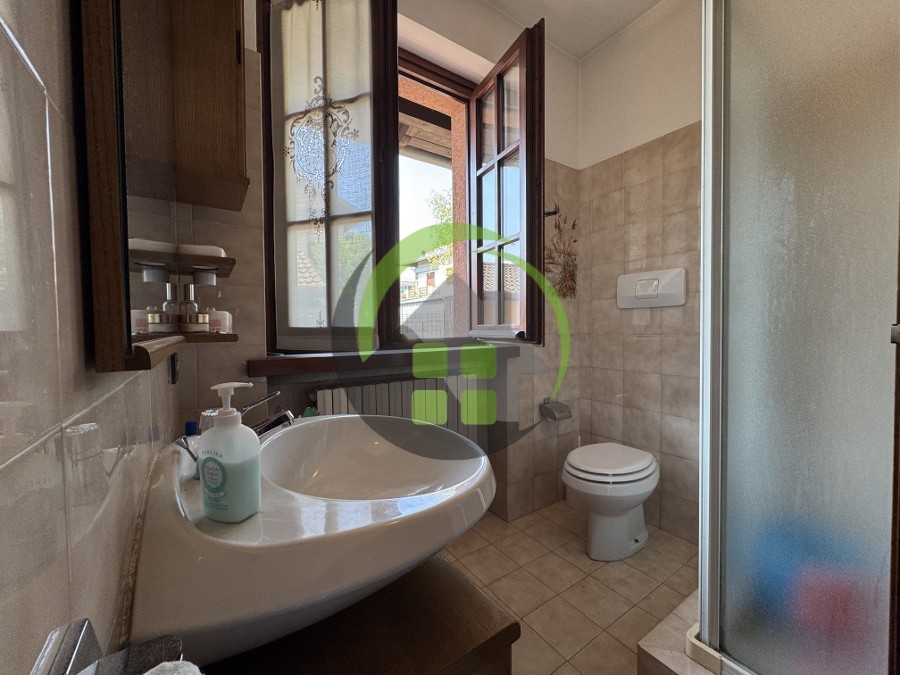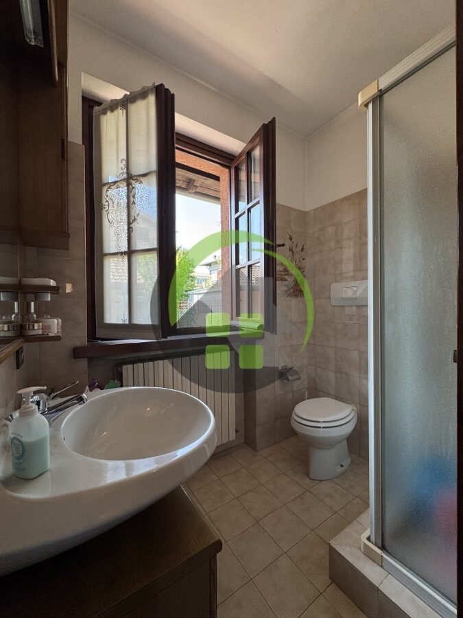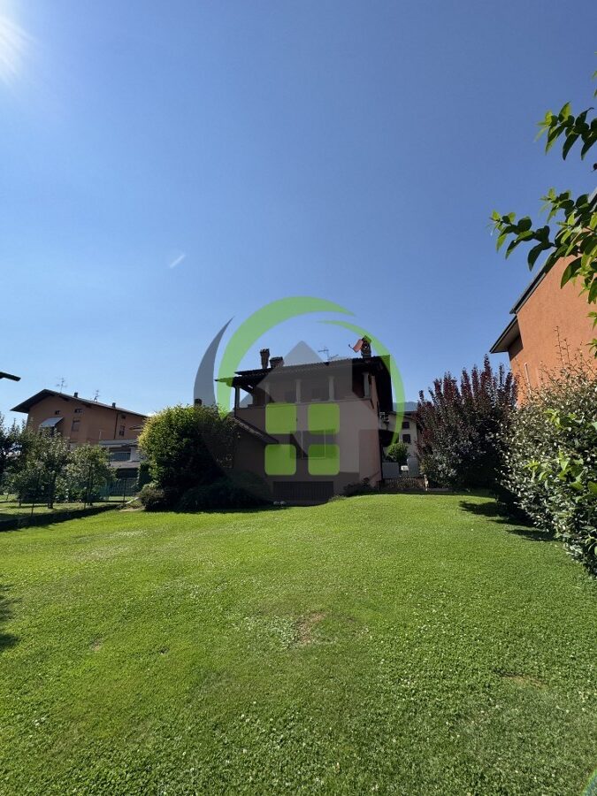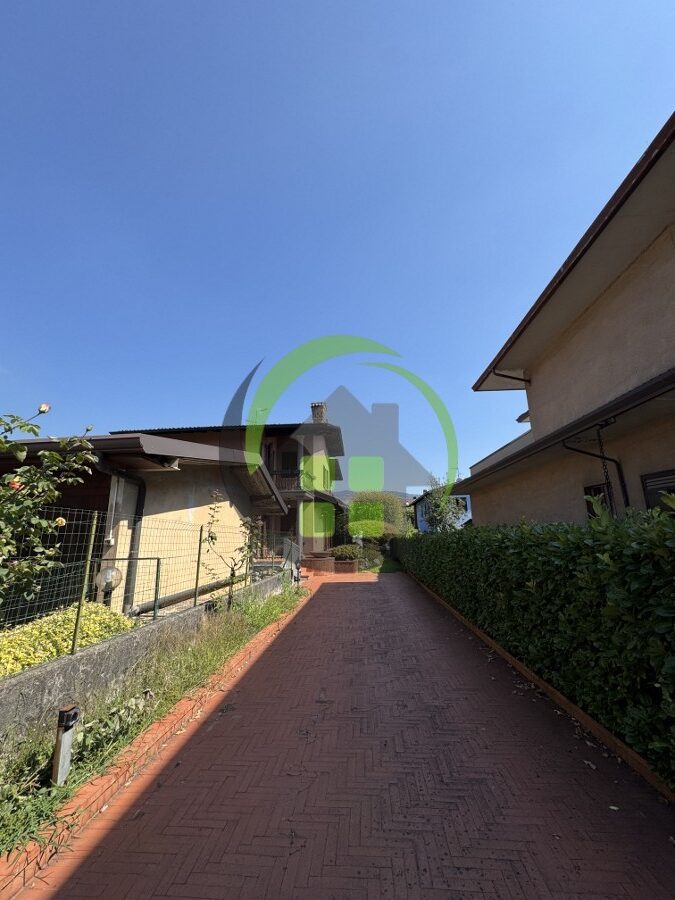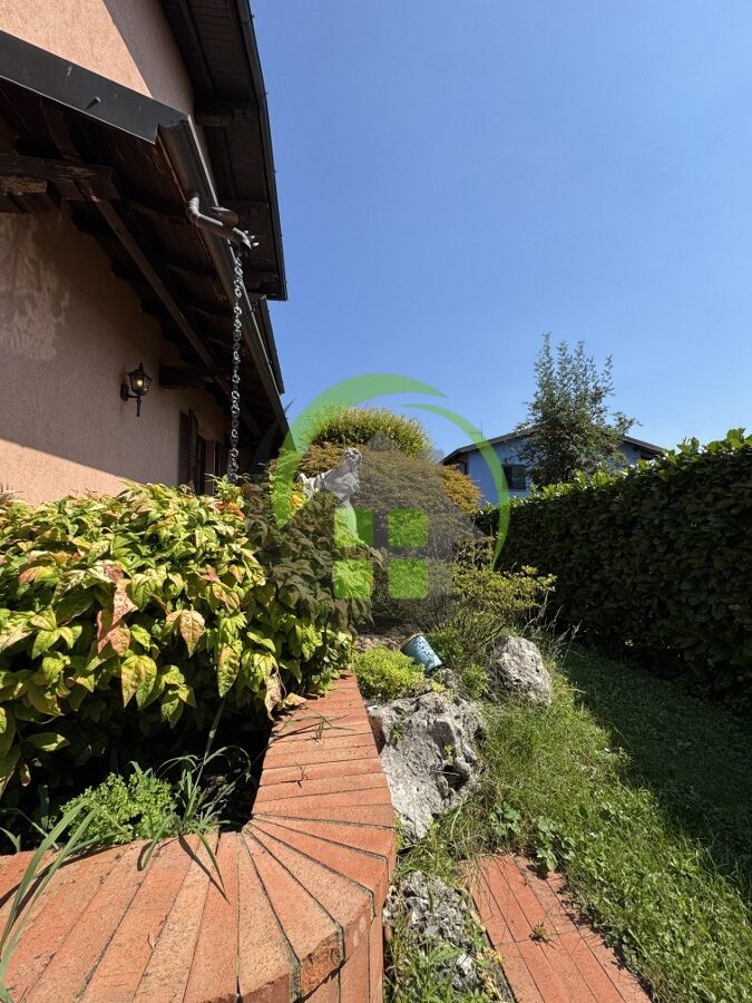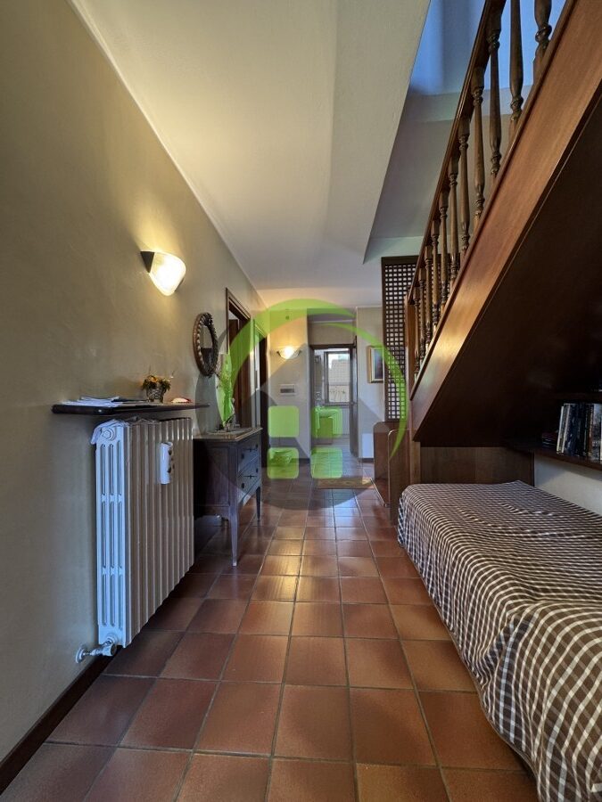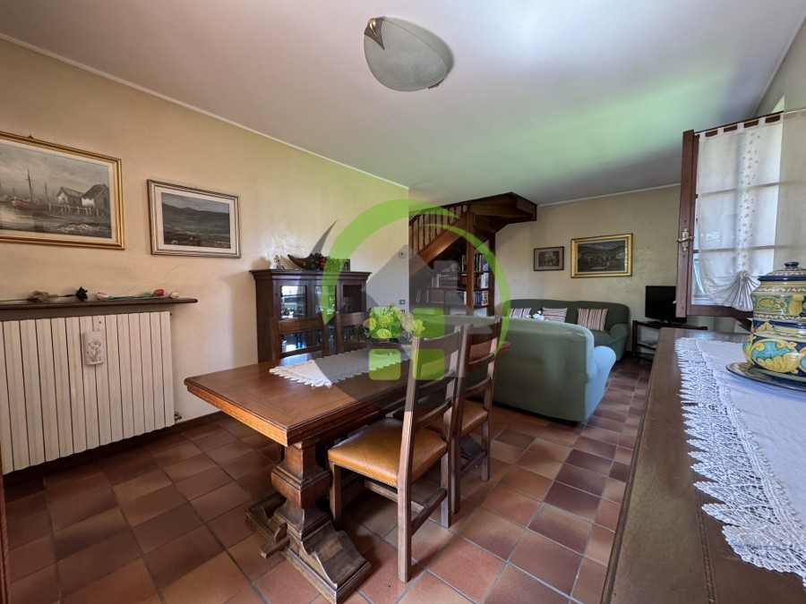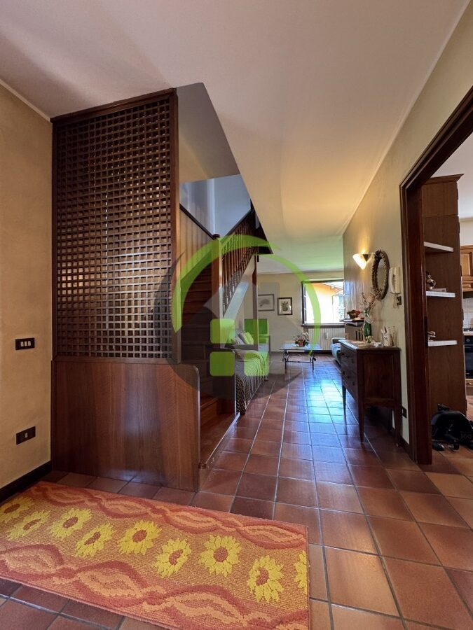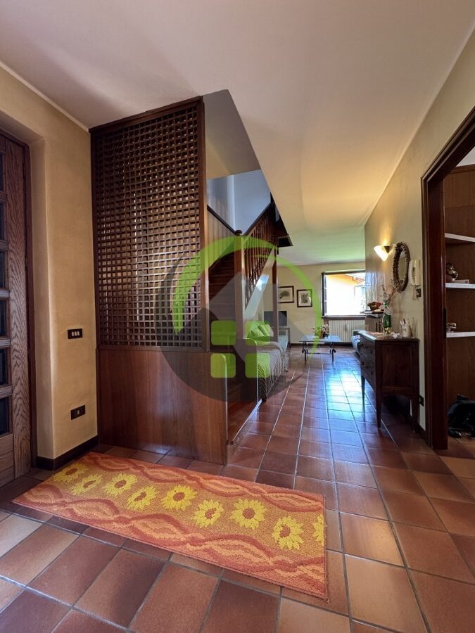 Al piano terra, la zona giorno si apre con un luminoso soggiorno, una cucina abitabile, uno spazio dedicato a studio o home office e un bagno di servizio. Gli ambienti sono funzionali e pronti ad accogliere momenti conviviali o di relax. La zona notte, situata al primo piano, offre tre camere da letto, un balcone, un bagno e una splendida loggia coperta con vista sul giardino privato di circa 350 mq, pianeggiante e completamente riservato: un’oasi verde ideale per cene estive, giochi all’aperto o semplicemente per godersi il silenzio.