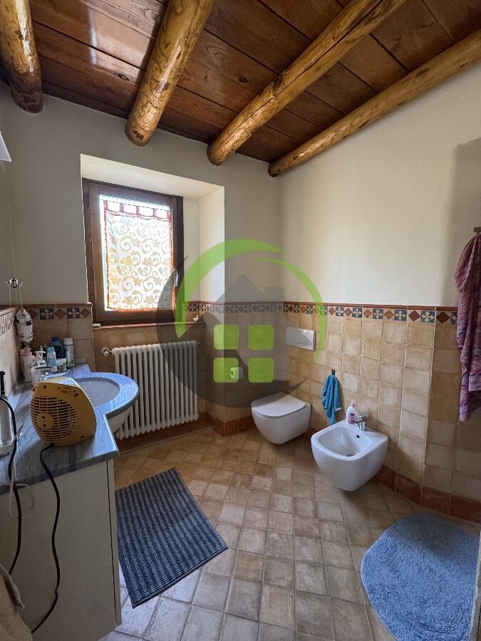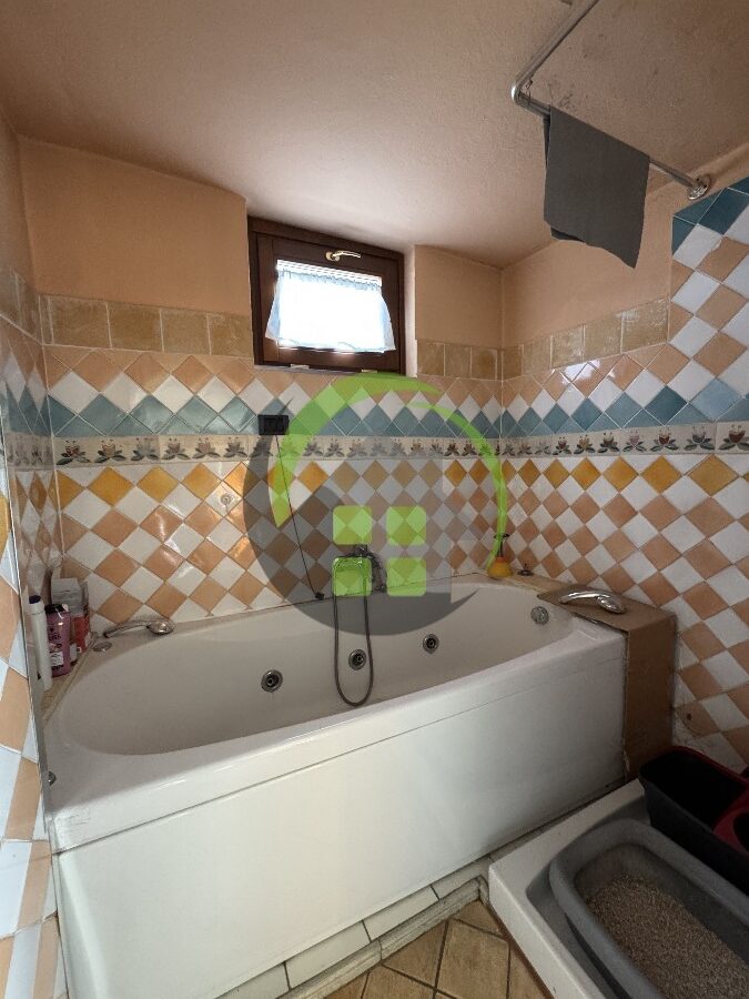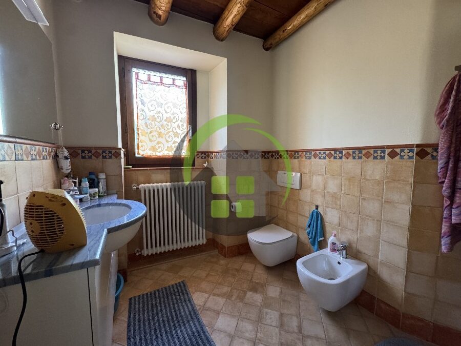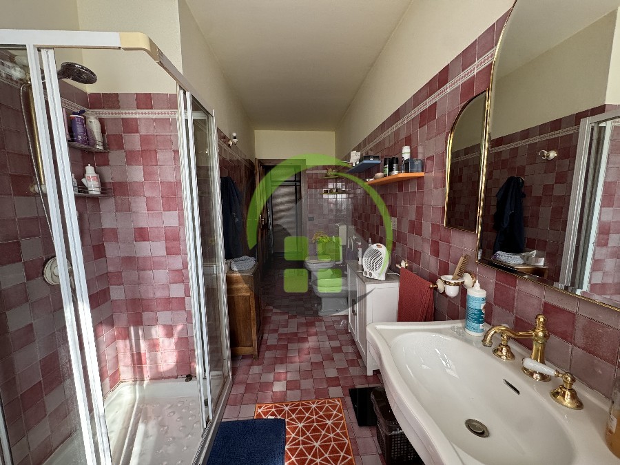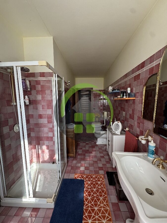 L’immobile accanto è un trilocale di 90 mq composto da ingresso, soggiorno con cottura, disimpegno, 2 camere e 2 bagni. Riscaldamento a caloriferi.
