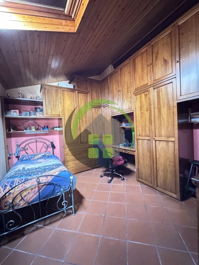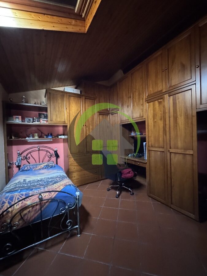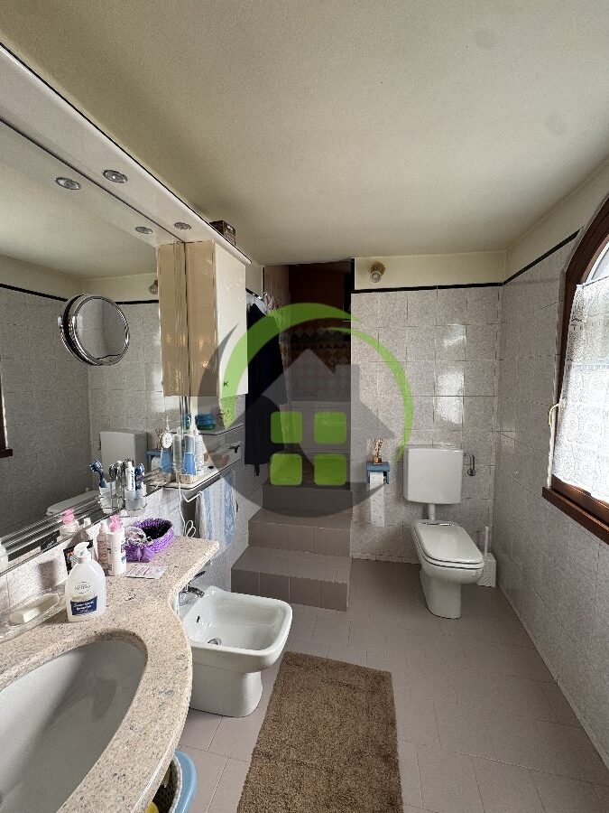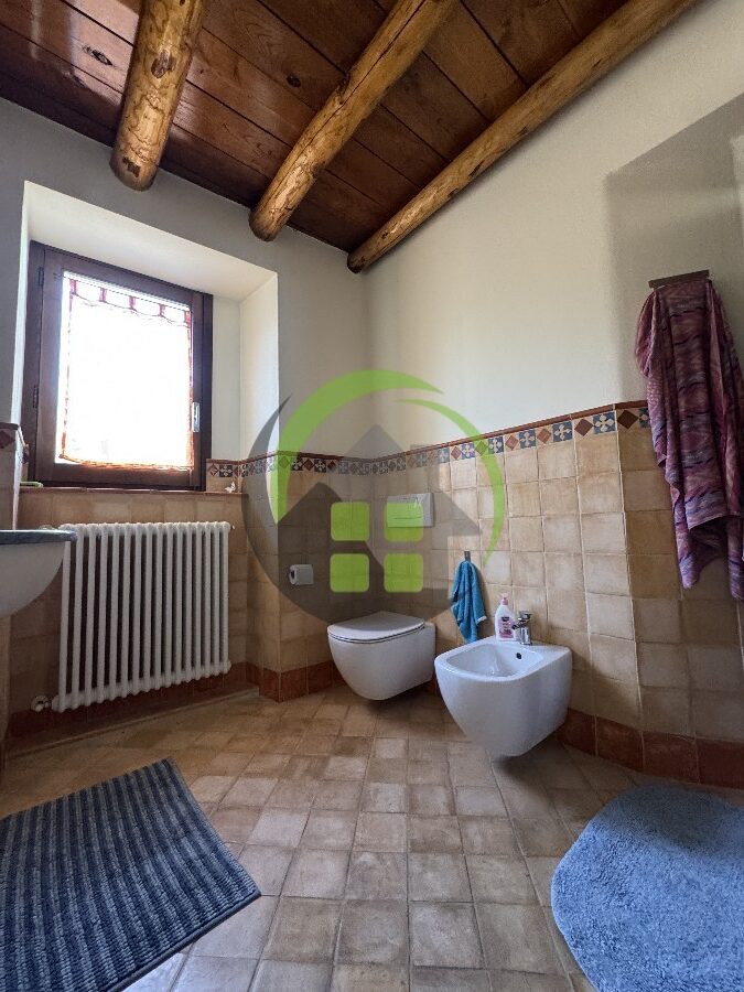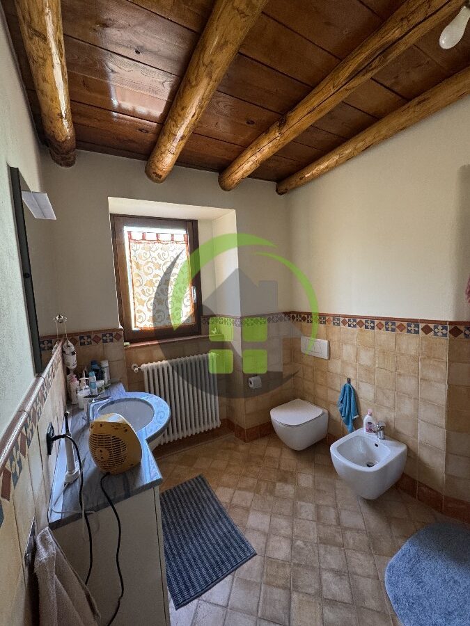 L’immobile accanto è un trilocale di 90 mq composto da ingresso, soggiorno con cottura, disimpegno, 2 camere e 2 bagni. Riscaldamento a caloriferi.